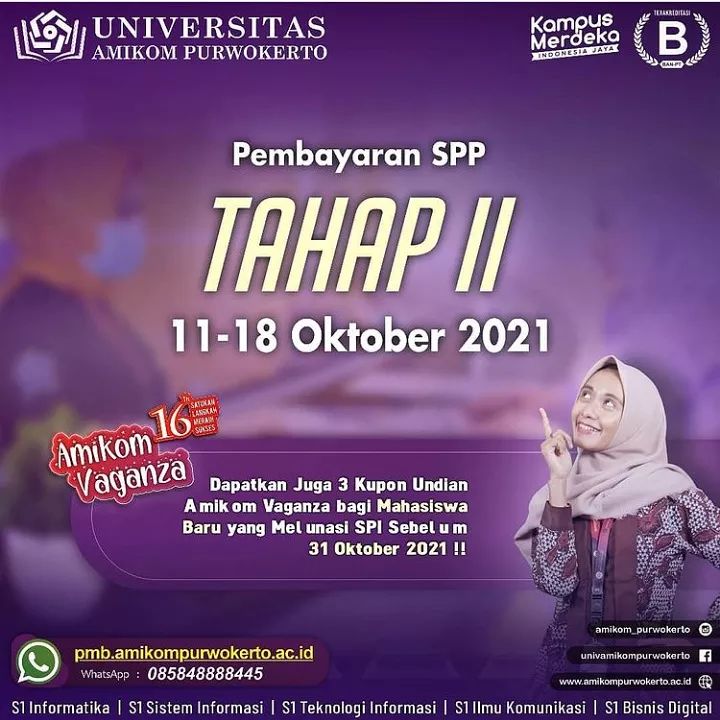 Dan bagi mahasiswa baru, buruan tuntaskan pembayaran SPI kamu sebelum 31 Oktober 2021 untuk mendapatkan 3 kupon undian Amikom Vaganza!